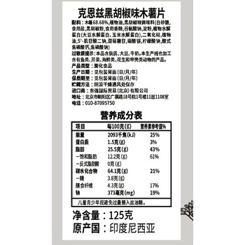 克恩兹印度尼西亚进口 Kernes 克恩兹黑胡椒味木薯片 125g