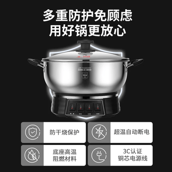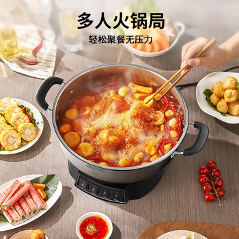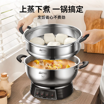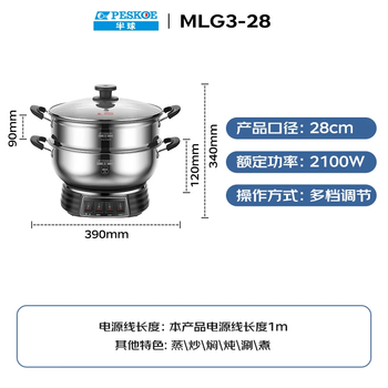 半球(PESKOE)电蒸锅多功能电热锅 28CM电锅多用途锅 电炒锅 电煮锅MLG3-28 带蒸笼