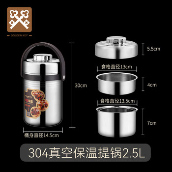 金钥匙(GOLDEN KEY)304保温提锅 2.5L直型防溢真空不锈钢饭盒 保温桶 GK-R2500T
