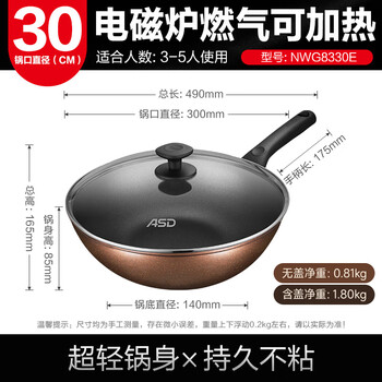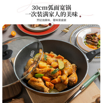 爱仕达(ASD)炒锅不粘锅少油烟平底炒菜锅家用不沾锅30cm燃气电磁炉通用NWG