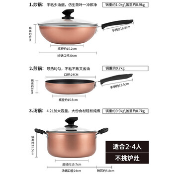 炊大皇锅具套装炒煎汤锅不粘锅三件套送礼套装磁炉通用雅致WG46628