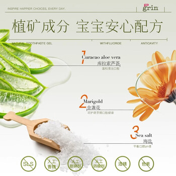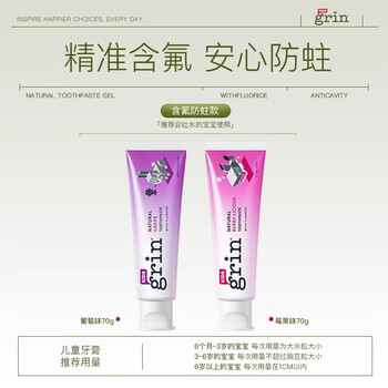 grin儿童牙膏含氟防蛀3-6-12岁宝宝婴幼儿青少年牙膏70g莓果味