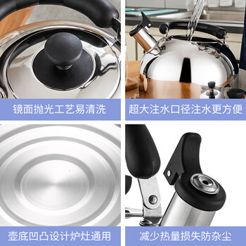 美厨(MAXCOOK)烧水壶304不锈钢响水壶 5L加厚鸣音 煤气电磁炉通用 MC005YJ