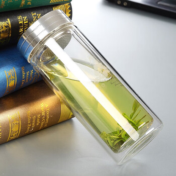富光双层玻璃杯 大容量高硼硅玻璃泡茶杯子 带茶隔商务办公水杯男女士