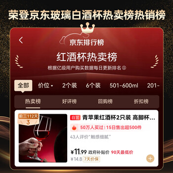 青苹果红酒杯350ml2只装 高脚杯葡波尔多萄酒杯 无铅玻璃杯洋酒杯
