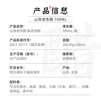 紫林 醋 10年陈酿6度酸 正宗山西老陈醋 700ml 山西特产GBT19777凉拌
