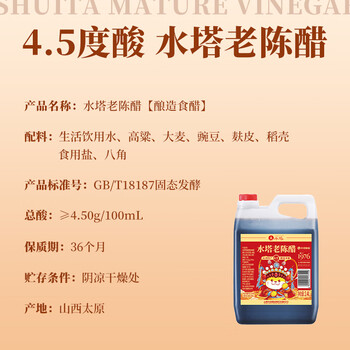 水塔老陈醋4.5度1.4L山西醋 凉拌调味饺子蘸料