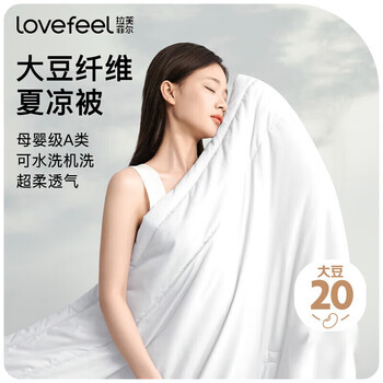 拉芙菲尔空调被母婴A类抗菌夏凉被可水洗机洗大豆纤维被薄被150*210CM 白