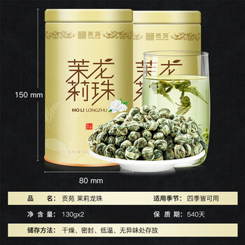 贡苑茉莉花茶 茉莉龙珠广西特种级130g*2罐 香珠绣球茶叶浓香型自己喝