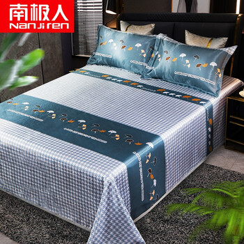 南极人冰丝席床单三件套 夏季空调凉席 可水洗提花冰丝软席子 230*245cm