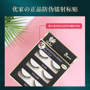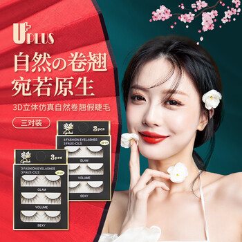 优家(UPLUS)磨尖3D自然浓密假睫毛一片式3对04整条眼睫毛硬梗cos舞台妆