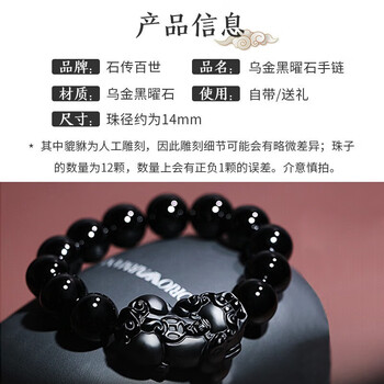 石传百世天然黑曜石手串招财貔貅手链男款本命年送男友送老公生日礼物