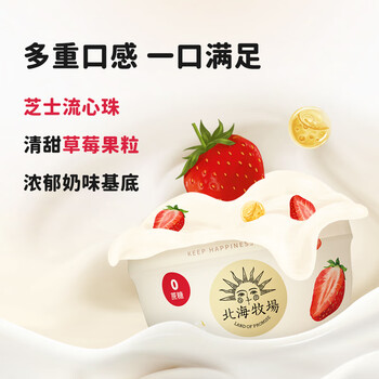 北海牧场宝石碗草莓流心芝士140g*4杯 0蔗糖3.8g蛋白 低温酸奶 健康轻食