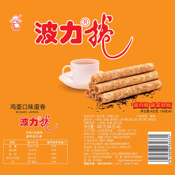 波力海苔鸡蛋味蛋卷432g(54g*8)休闲零食糕点代餐饼干节日送礼礼盒