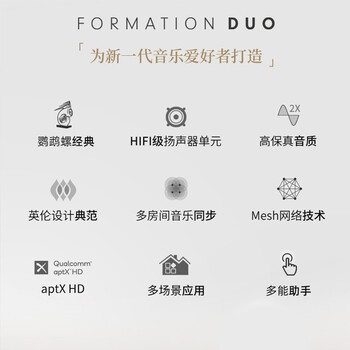 宝华韦健Formation Duo 家用无线蓝牙书架音箱 有源音响立体声HIFI家庭影院 黑色 节日礼物