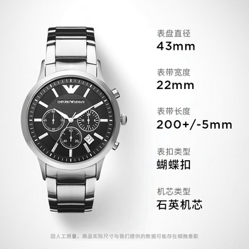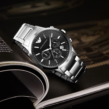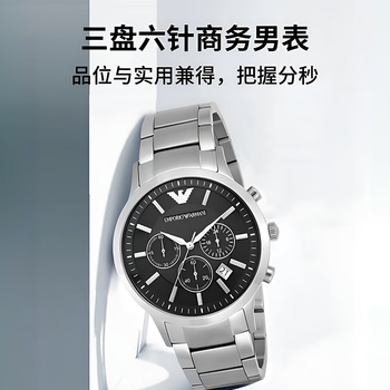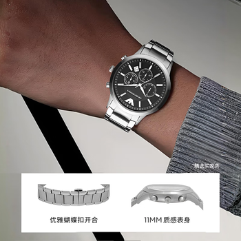 EMPORIO ARMANI阿玛尼飞行员手表男士 三眼计时石英表男款 生日礼物送男友AR2434