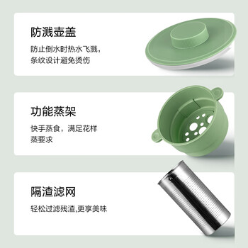 生活元素(LIFE ELEMENT)养生壶 1.5L煮茶壶 多功能自动预约烧水花茶 12小时智能恒温 配煮不锈钢茶滤网、蒸屉一体 D63