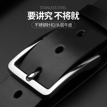牛当家皮带男针扣不锈钢腰带裤带头层牛皮3080礼物 雅致黑 110cm