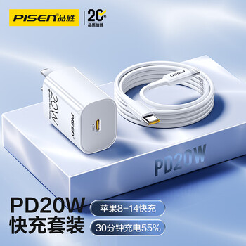 品胜3C认证 苹果充电器套装PD20W快充iPhone14充电头type-c插头+PD数据线通用14promax/13小米华为手机