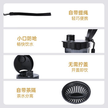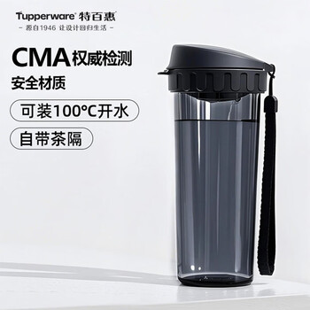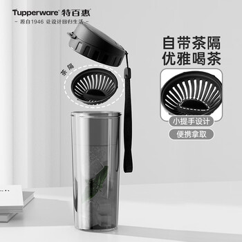 特百惠(Tupperware)茶韵500ml塑料杯男女士学生运动水杯子大容量泡茶杯 酷炫黑