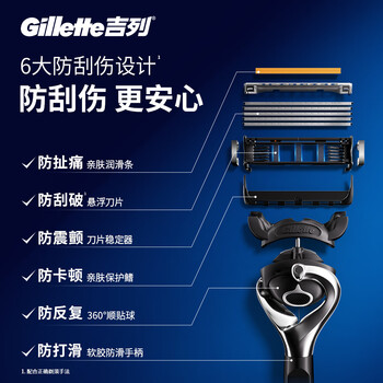 吉列锋隐5致顺 剃刮胡须刀手动差旅便携款 1刀架5刀头 5层刀片 男士实用礼物 京东自营旗舰非吉利 防刮伤免须泡