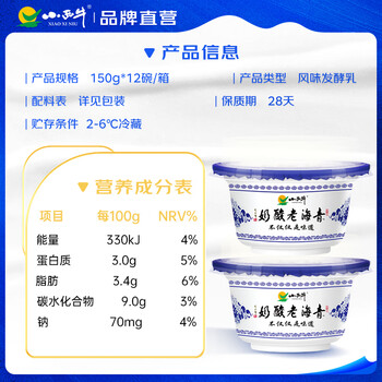 小西牛 青藏奶源老酸奶原味老酸奶150g*12碗 源头直发