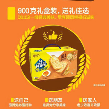 闲趣自然清咸原味年货礼盒900g 薄脆饼干 办公室休闲零食 早餐下午茶