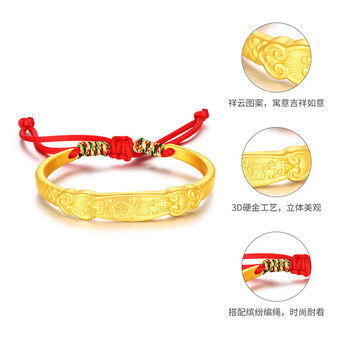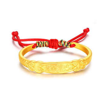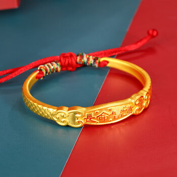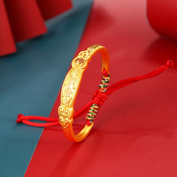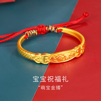 梦金园宝宝黄金手镯足金硬金长命富贵镯子本命年红绳半镯满月