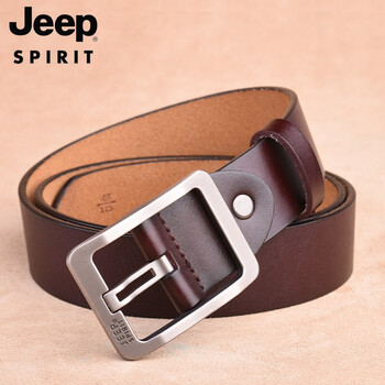 JEEP SPIRIT吉普皮带男士腰带牛皮商务休闲针扣裤带中青年送老公情人节礼物