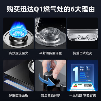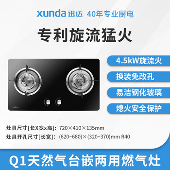 迅达(XUNDA)燃气灶天然气灶家用双灶具灶台 嵌入式台式两用 4.5KW旋流火灶一级能效 Q1-天然气