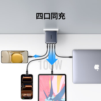 绿联氮化镓充电器套装100W适用苹果17三星小米手机pd65W笔记本电脑充电头MacbookPro多口Type-C快充头