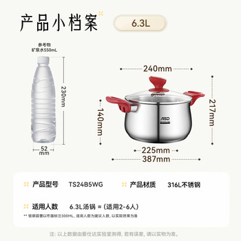 爱仕达(ASD)汤锅316L食品级加厚不锈钢煮粥锅复底蒸奶锅24CM燃气电磁炉通用B5