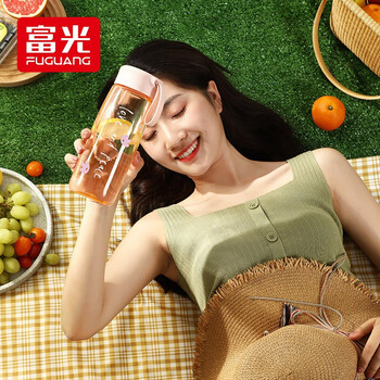 富光塑料茶杯水杯可爱ins风学生便携创意带盖杯子耐摔夏天简约太空杯