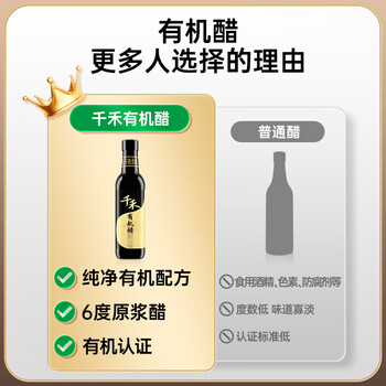 千禾 有机醋 酿造食醋 原料有机认证500mL 不使用添加剂