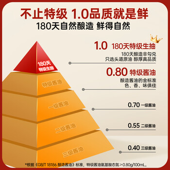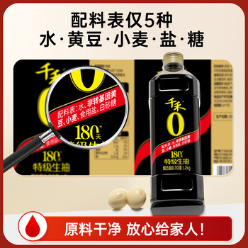 千禾酱油零添加180天1L【特级生抽】炒菜凉拌酿造不加防腐剂
