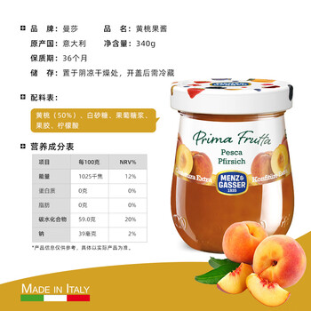 意大利进口 曼莎 黄桃果酱340g*1瓶