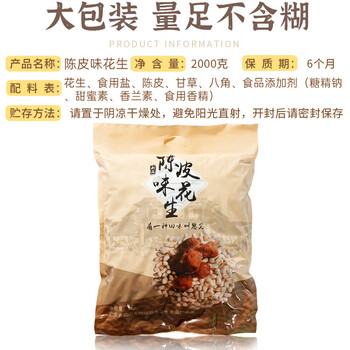 滋粤鹤星陈皮花生2KG大包装带壳咸香脆熟咸干花生零食坚果炒货下酒菜