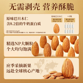 老街口巴旦木仁500g罐装原味烘焙熟无壳干果扁桃仁杏仁休闲零食坚果年货