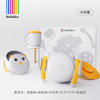 bebebus宝宝辅食碗 儿童注水保温碗吸盘碗 全身可拆洗水杯餐具6件套礼盒