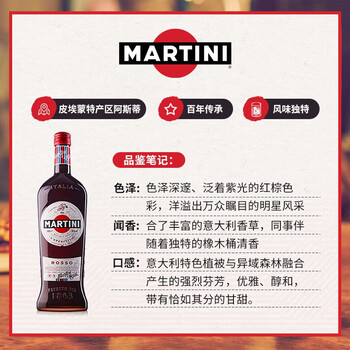 马天尼(Martini)洋酒 意大利 红威末酒 甜型气泡果酒 1L 送礼