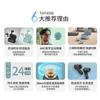 飞利浦(PHILIPS)真无线蓝牙耳机无线耳机主动降噪耳机跑步运动耳机苹果华为小米安卓手机通用圣诞礼物TAT4506绿