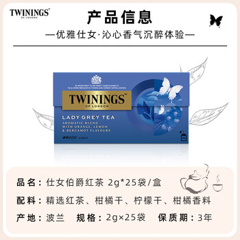 川宁(TWININGS)红茶 仕女伯爵红茶 波兰进口25袋*2g 红茶茶包袋泡茶热泡茶