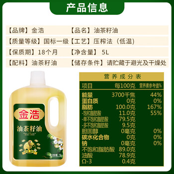 金浩(JINHAO)【保真山茶油】保真一级压榨高端油茶籽油山茶油5L 零反式脂肪酸