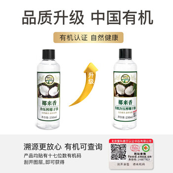 椰来香 有机天然冷榨椰子油250ml 生酮防弹咖啡 可卸妆护肤护发 便携装
