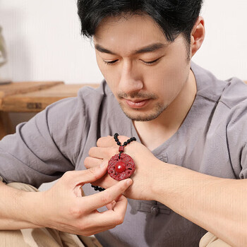 妍韵珠宝高含量紫金砂朱砂吊坠双龙护主龙牌转运护身符本命年马年男女款