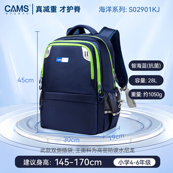 CAMS悬浮减重书包三到六年级减负护脊初中生轻便背包S02901KJ 抗菌款