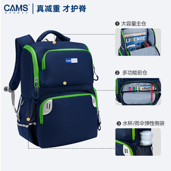 CAMS悬浮减重书包1-3-6年级男女大容量小学生轻便护脊双肩包S03904