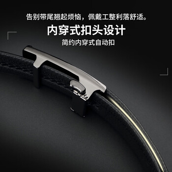 鳄鱼恤内穿式皮带男士头层牛皮自动扣青年休闲腰带礼物12968送男友