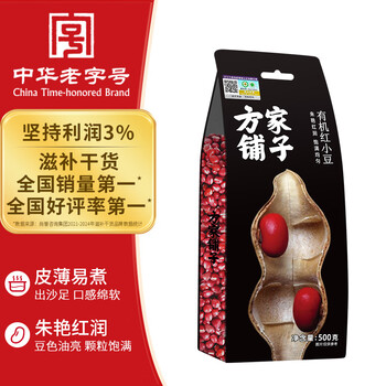 方家铺子中华老字号 有机红小豆1斤 红豆粥豆沙 大米伴侣 五谷杂粮粗粮