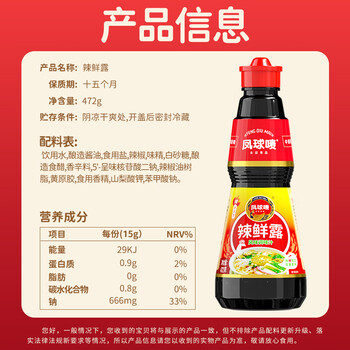 凤球唛辣鲜露472g 凉拌菜辣酱油海鲜捞汁小龙虾调味料